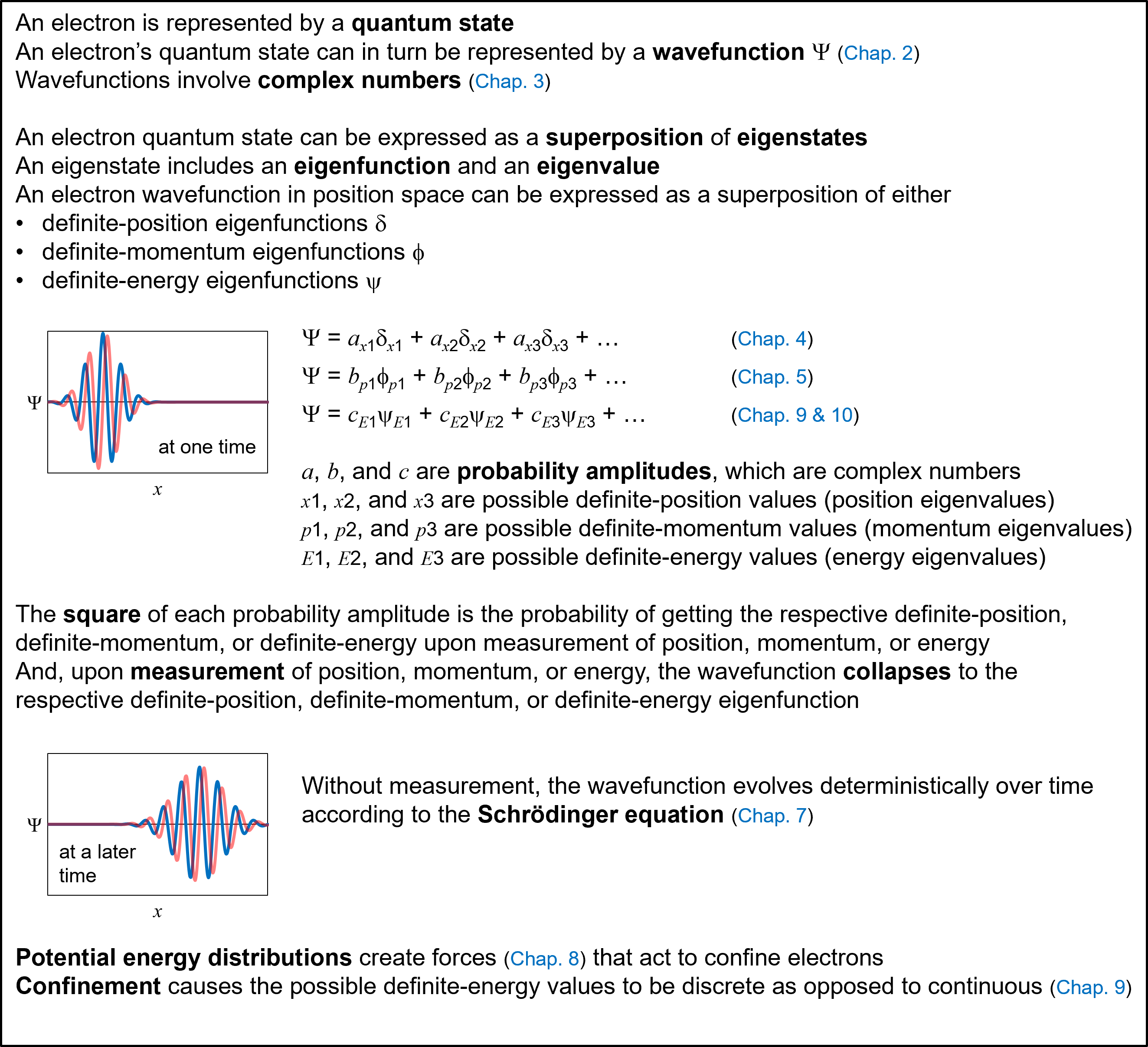 To get our foothold in quantum mechanics, we will focus on electrons. Here are some things to know about electrons: