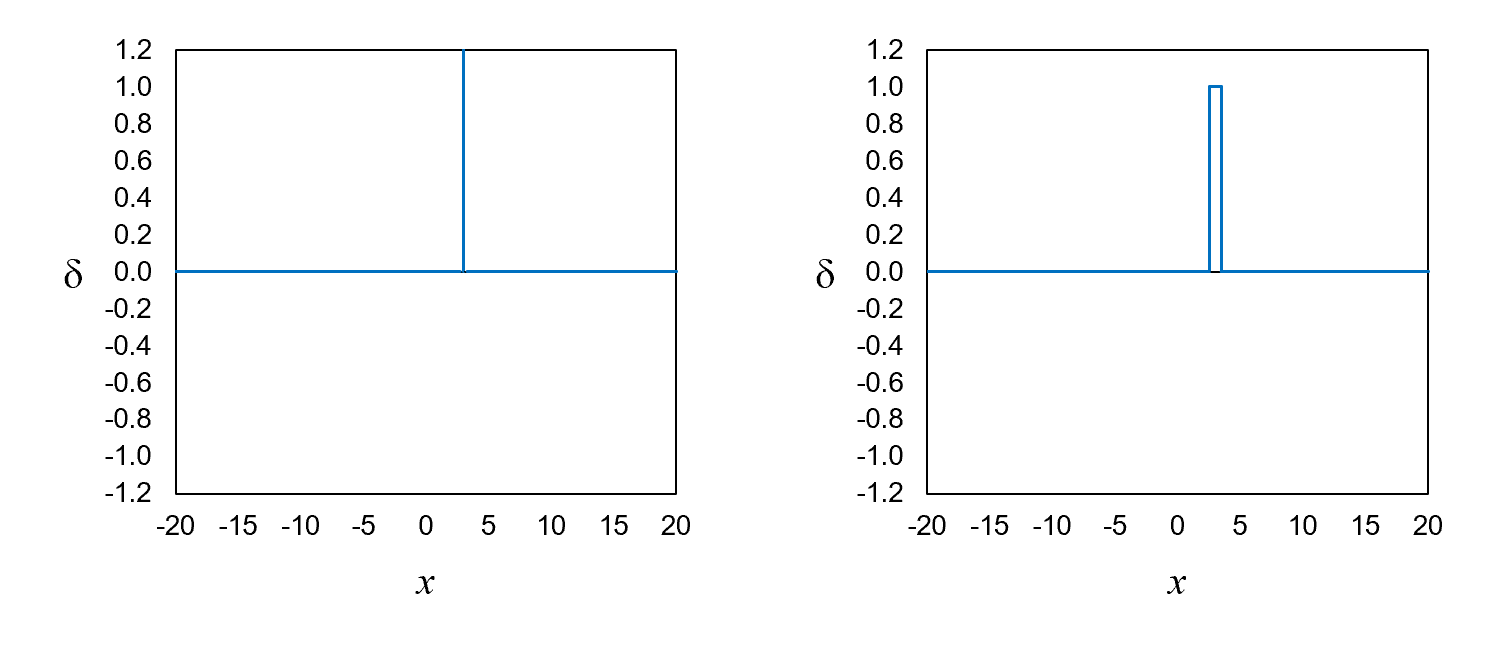 the definite position of 3—is off the chart at x = 3 and zero everywhere else.