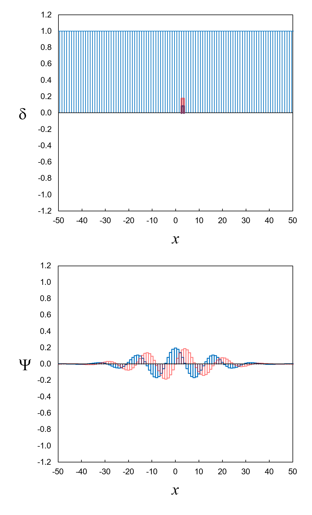 δ and the wavefunction Ψ.